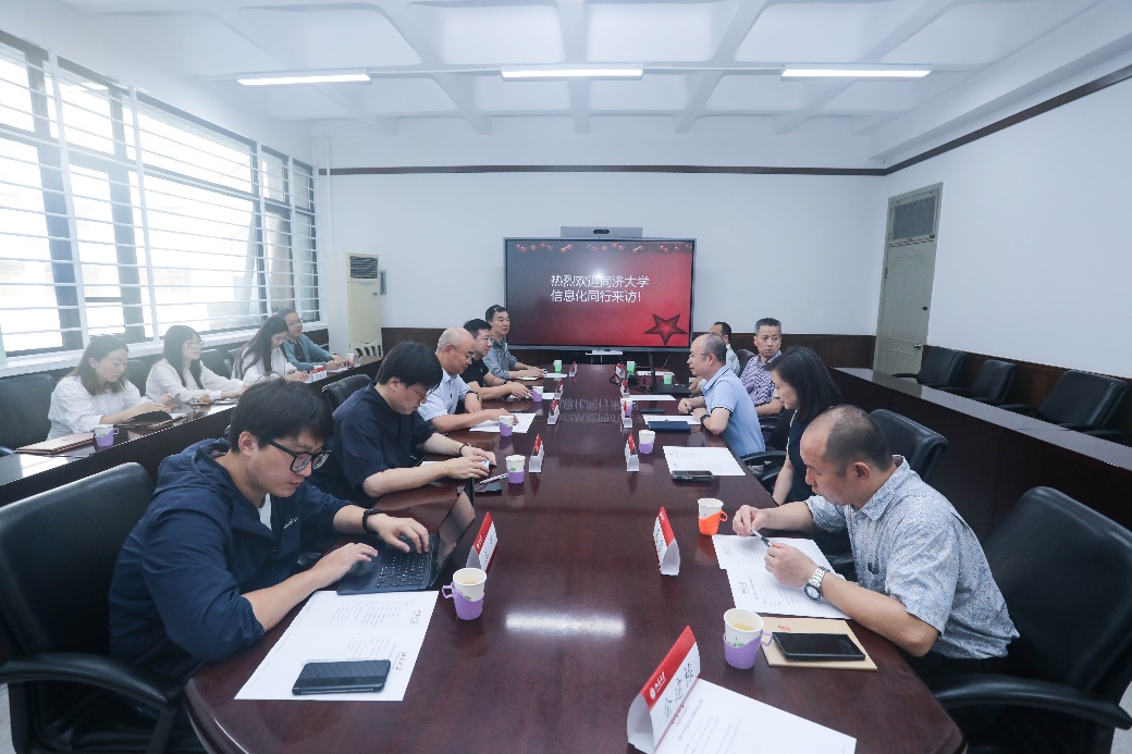 2024年9月19日下午,同济大学信息化办公室主任许维胜教授带领团队一行八人到北京大学计算中心进行座谈交流,就智慧校园建设及教育信息化转型等工作开展调研。计算中心副主任欧阳荣彬、教师教学发展中心副主任佟萌接待并进行情况介绍,计算中心多名技术人员参与交流讨论。